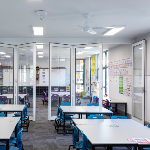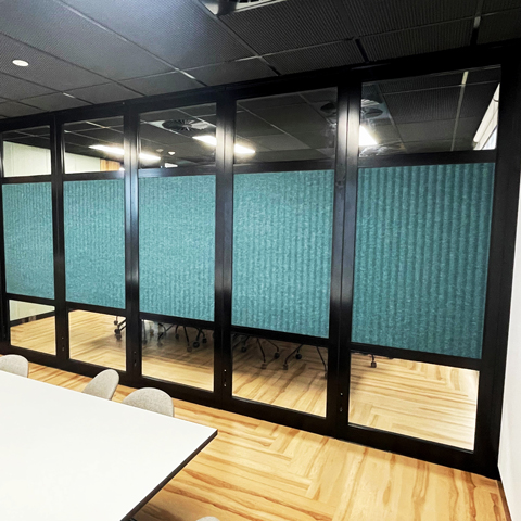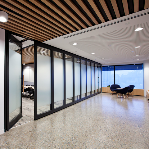 Glazed acoustic operable walls combine openness and light with flexible functionality, while controling sound.