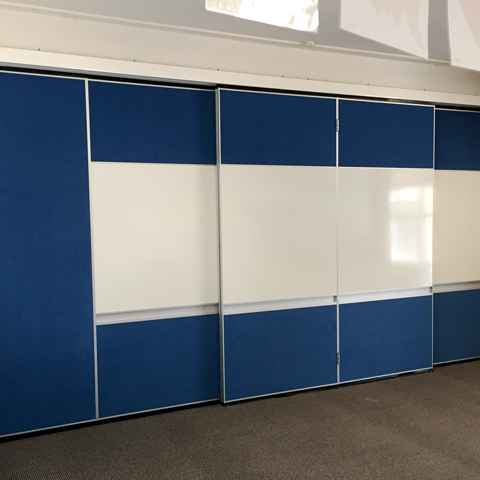 A solid operable wall is a versatile product designed to make the most of limited space. Our acoustic panels move with ease within the top track with no unsightly floor tracks or guides etc. Neat and clean, solid operable walls complement the room. They provide the acoustic qualities of a fixed wall and are fitted with quality seals and closures. Our operable walls use proven tracking and trolley systems to ensure that they stack correctly and close smoothly.